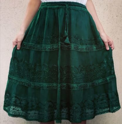 Fusta este pe elastic și se întinde pana la 90cm în talie și 125cm pe șold, are dublură din bumbac.